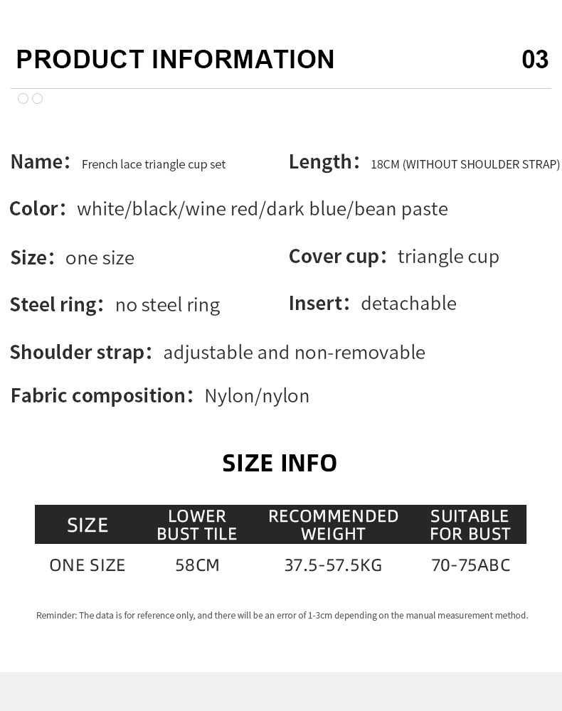 M (80/85BC, recommended 50-60kg).